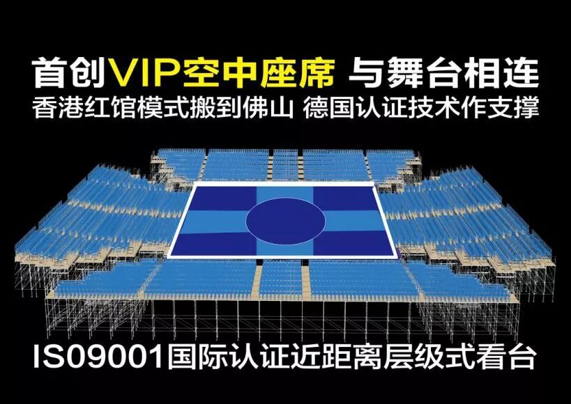 国内首创将内场全部VIP区座位,全部升高3米,与四面舞台相连,每两行或四行升一级台阶,独享空中座席的感受,令购买了VIP门票的观众观演无障碍,真正呈现香港红馆近距离观演模式,观众能舒适观看四面舞台带来的零死角效果!