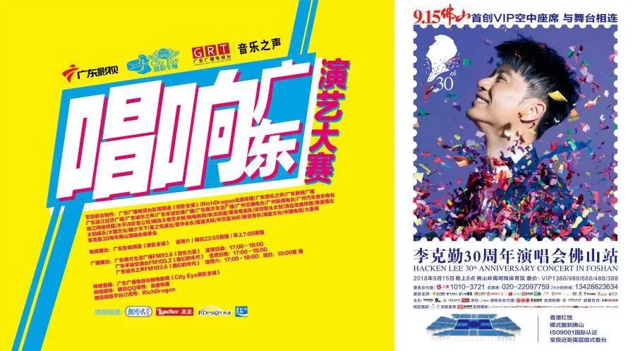 广东影视频道《微影全城》、广东广播电视台音乐之声【唱响广东演艺大赛】与全省各大主流媒体机构以及演唱会组委会联手举办,在广东各地区选出优秀演艺之王,有机会在9月15日李克勤30周年演唱会佛山首站的四面舞台上,在万人见证下,接受全媒体颁发的荣誉证书嘉许,一起唱响经典金曲。
