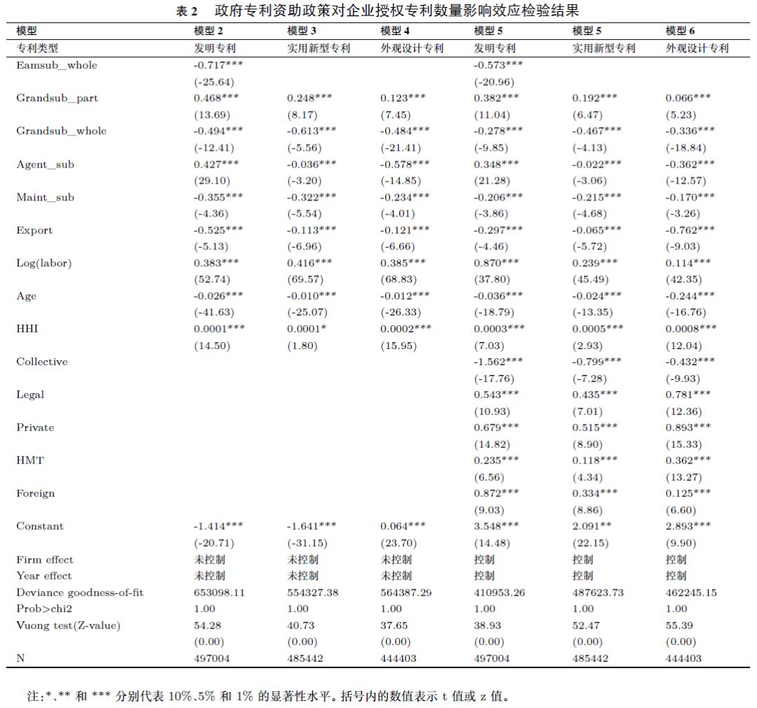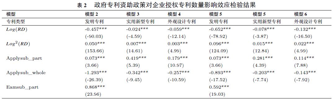 (二)政府专利补贴和资助政策对企业授权专利数量的影响效应