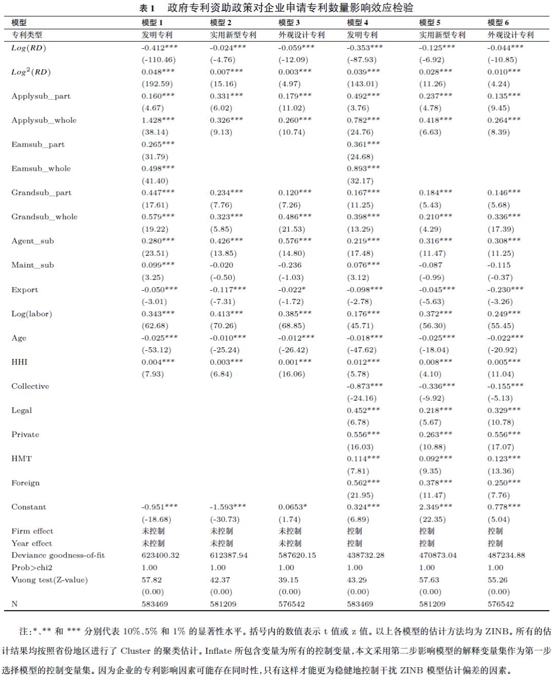 (一)政府专利资助政策对企业申请专利数量的影响效应