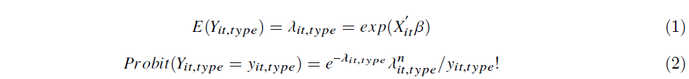 在借鉴已有文献提出的专利生产函数模型的基础之上[6](P55-72)[7](P287-343)[1](P57-68)[2](P236-249),设定企业专利数量服从如下泊松分布(thepoisson’sdistribution)过程:
