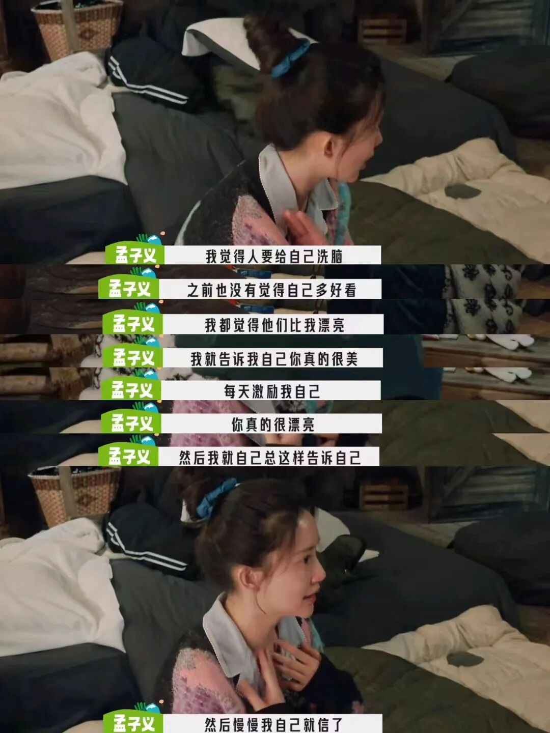 所以姐妹们,学学孟姐,在自我认可度高的同时又不会陷入自怜自傲的陷阱,她也能客观的看待自己,「我某些地方真的很好,但也有缺点,我在努力修正自己,不内耗,快乐的活着」…