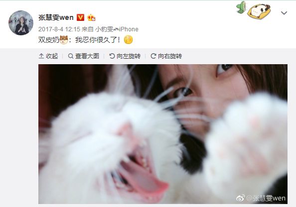 其实当你对张慧雯更加了解,你就会发现,她其实就像一个邻家女孩一般,她养猫、