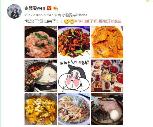 不仅是微博上的各种晒美食,连谈到拍戏中最欢乐的时光也是与美食有关的日子。“其实我们拍戏,在组里天天都挺开心的,每次聊天都能聊得哈哈哈大笑。对我而言,最开心的是吃饭的时候,就是开饭了,尤其是吃火锅啊,大家一起加餐的时候。”