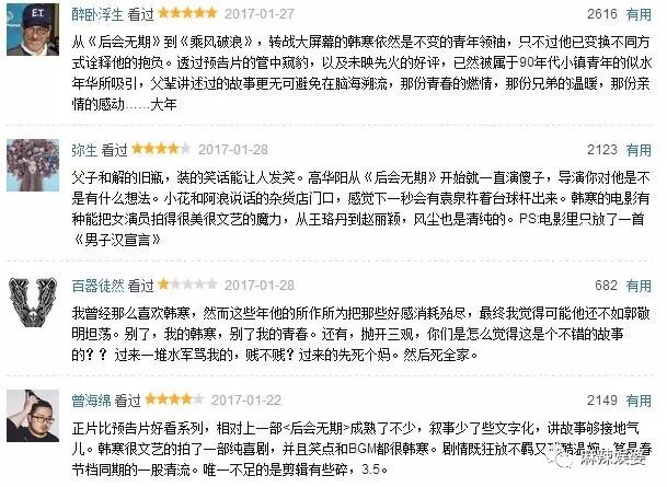 看过《乘风破浪》的观众们纷纷表示,比起韩寒的上一部《后会无期》,这一部作品故事情节接地气儿,叙述事情少了口语化,电影从头到尾都充斥着韩式笑点。