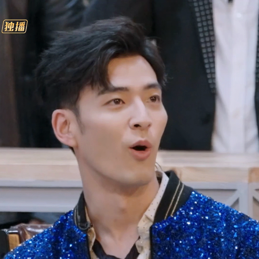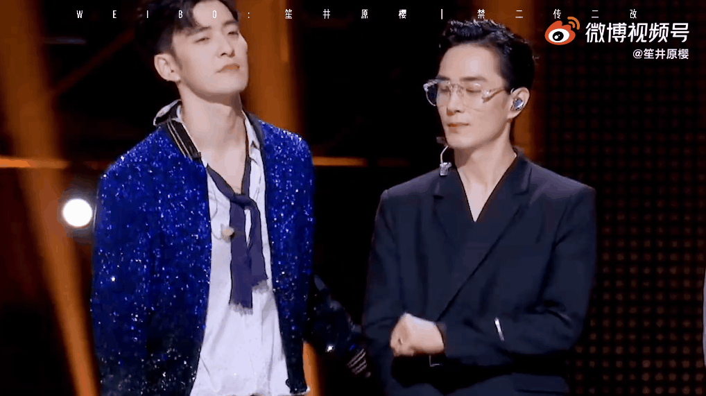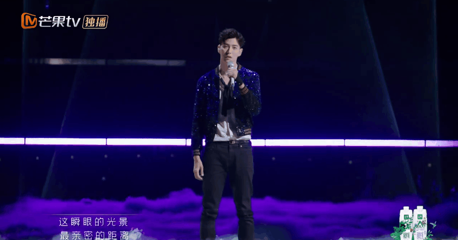 一身蓝黑色的渐变水钻外套,他华丽亮相在全国观众的面前。