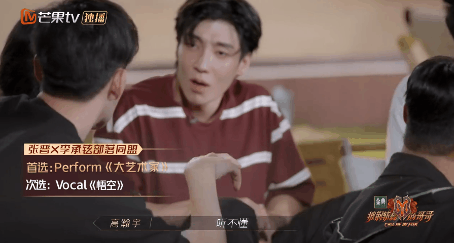 当哥哥们在用英文讨论选曲时,高瀚宇在一旁直呼“听不懂,什么意思?”