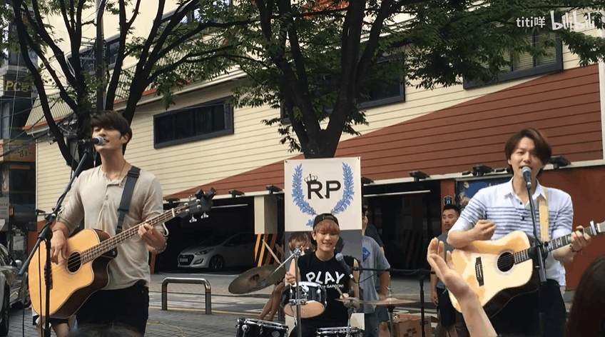 有粉丝放出之前在韩国街头偶遇他们组合路演的视频。