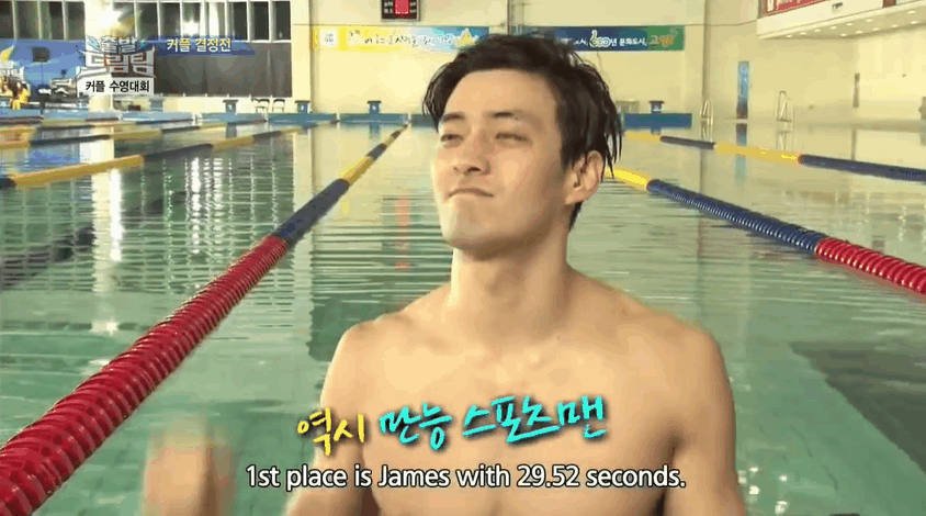 在韩国综艺的游泳比赛中,他就展示过自己强壮的身体肌肉。