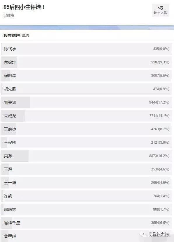 当然,网友投完票,还有业内媒体评比这一环,目前的前四并不一定会是最终的四小生。