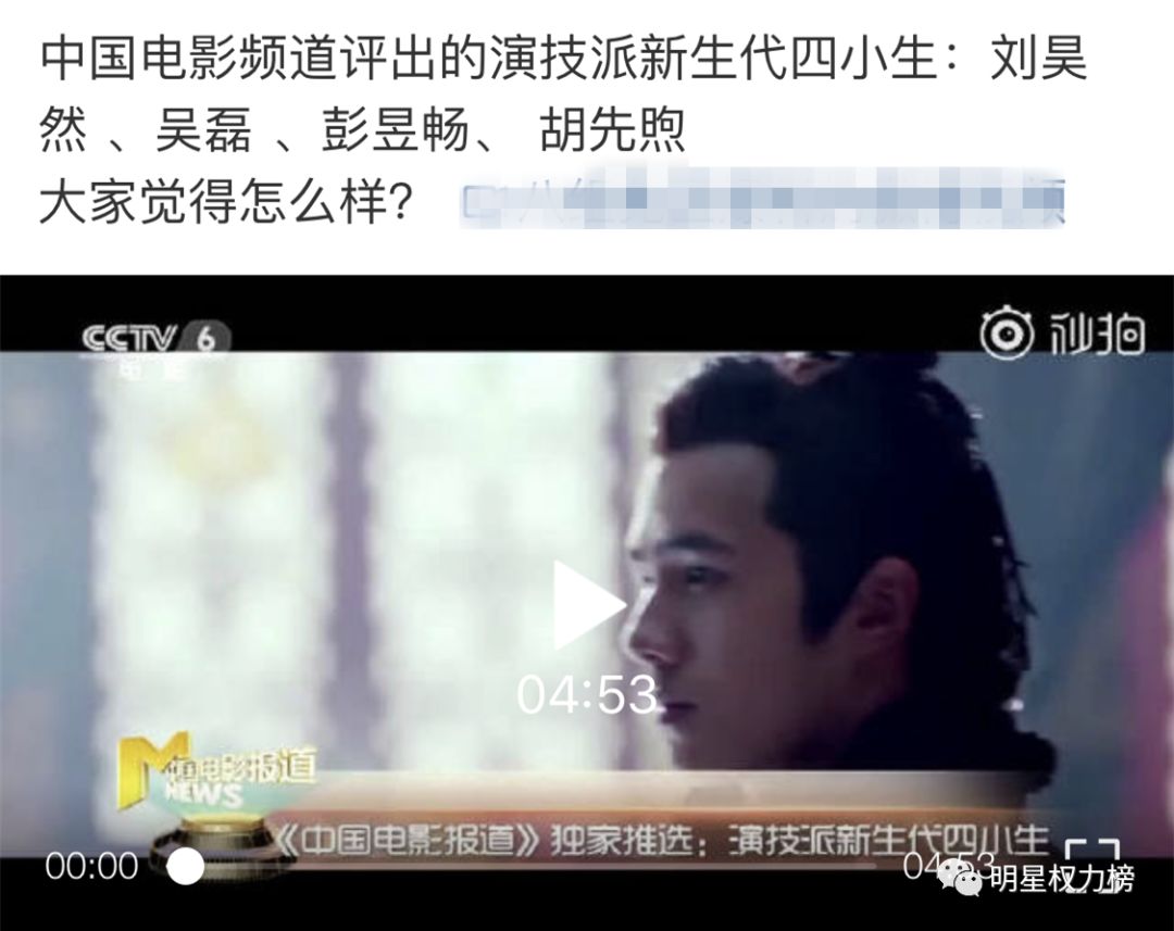 央视电影频道评选出来的新生代演技四小生他就是其中一个。
