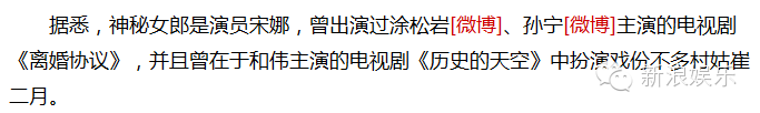 据说这位神秘女子叫宋娜,也是名演员,曾经和于和伟搭过戏。(你们认识吗?反正我是没听说过啊)