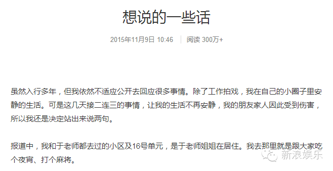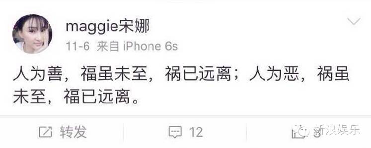 11月6号,也就是于和伟首次在微博上作出回应当天,宋娜再发微博说了一大串文言文,有种老死不相往来的意味。