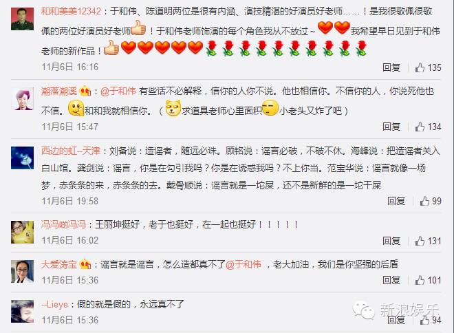 「周三见」曝出后,还没等王丽坤回应,于和伟就先行一步发微博说:“假的真不了”。