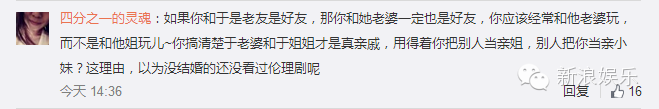 更有逻辑非常清晰的网友这样说「如果你和于和伟是好友,那和他老婆一定也是好友。你应该经常和他老婆玩而不是他姐!」