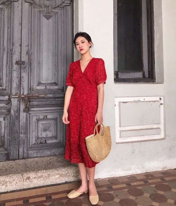 知道有人觉得白色素净,那赶快pick红色碎花裙。一点要选红白搭配的,我发现红色底因其他的小碎花都不如白色和谐。