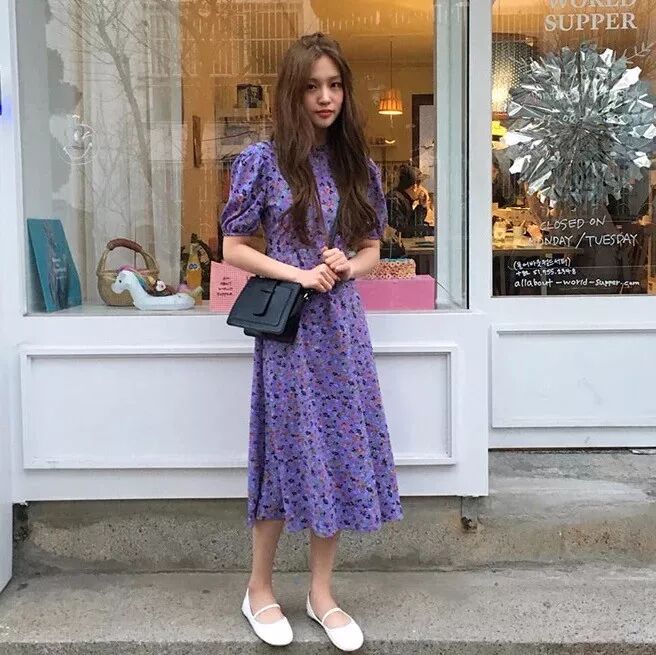 紫色饱含神秘和幽静的气息,选紫色碎花最好搭好花花颜色以及整体装扮。