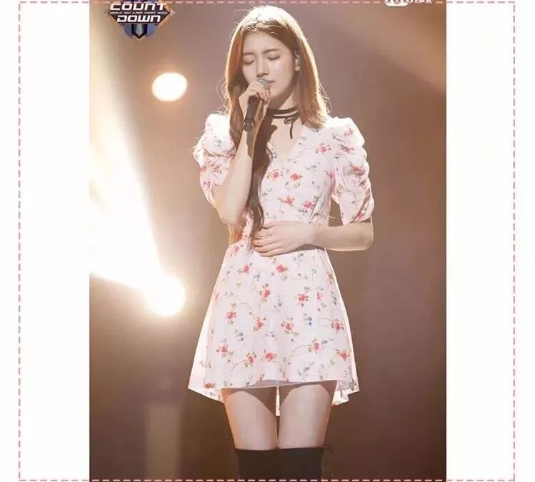 秀智在打歌节目上穿了一套白底粉红碎花连衣裙,又温柔又甜美,黄一完全听不见她唱啥,我只想买这条裙子回家!划重点,超好穿:
