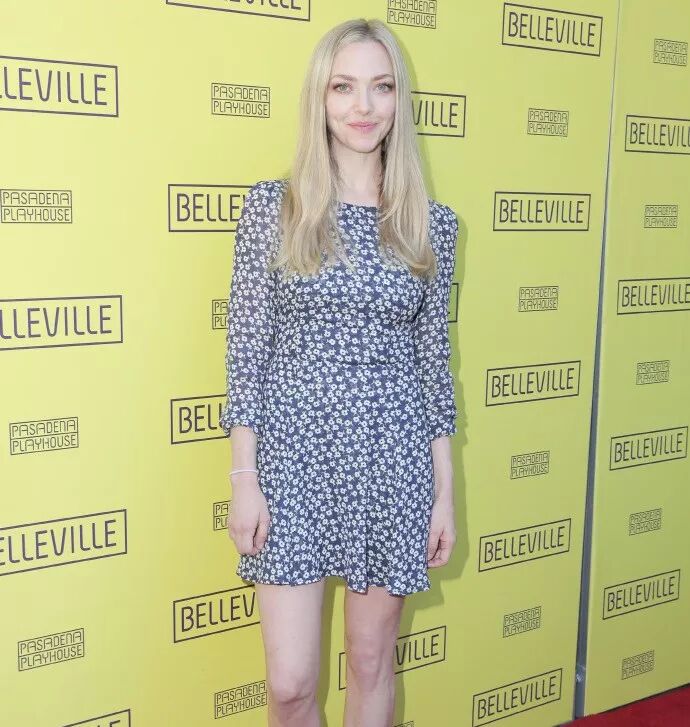 欧美女星也爱穿碎花哒~女神阿曼达在塞弗里尔德参加活动时候穿了一条紫底白花的高腰款。