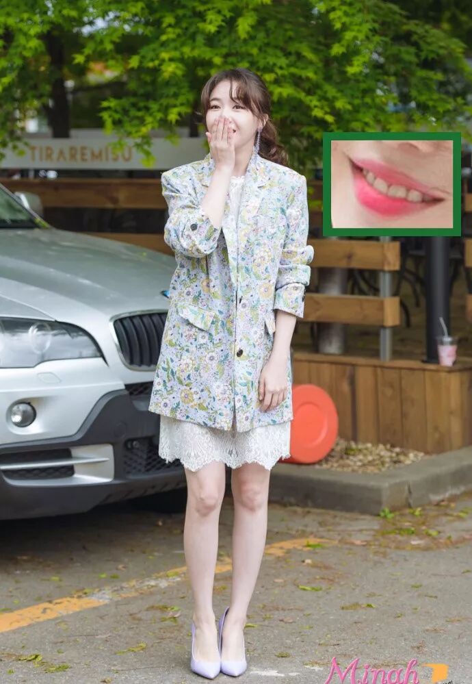 方敏雅把碎花穿成外套了,恩....比较一般....