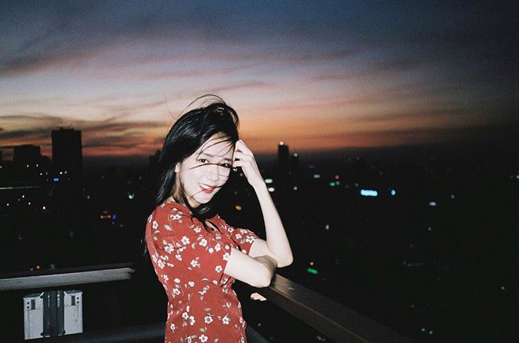 总之呢,夜景穿红裙子准没错的。用iPhone自带相机选鲜明-反差色,就可以排出下面复古的效果~