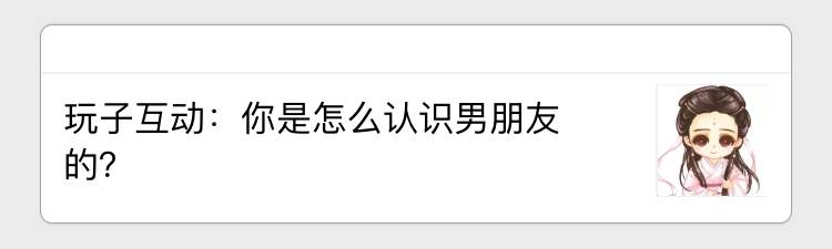 请看微信第3条【玩子互动】:你是怎么认识男朋友的?请有男票或老公的妹纸们,分享一下你们的相识经历,给玩子我这个单身狗,以及广大单身狗支招,赶紧找到个男朋友!