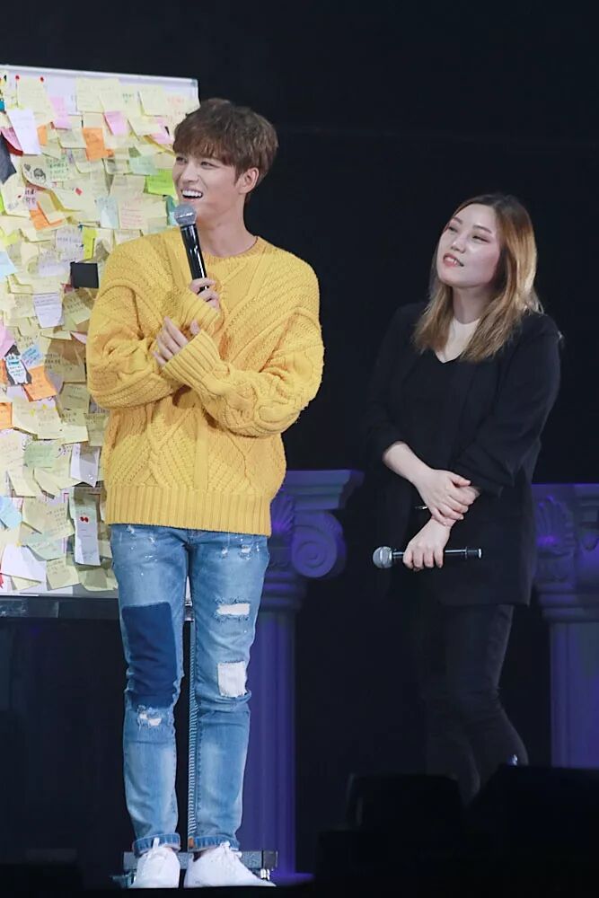 金在中香港亮相办见面会 穿黄色毛衣阳光温暖