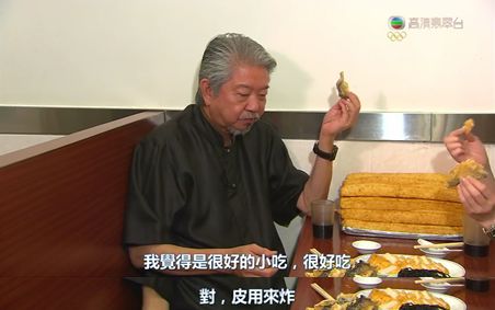 作为舌尖的顾问,蔡澜先生在拍摄美食节目的时候,也不忘介绍炸鱼皮,吃的时候还一脸兴奋的样子~