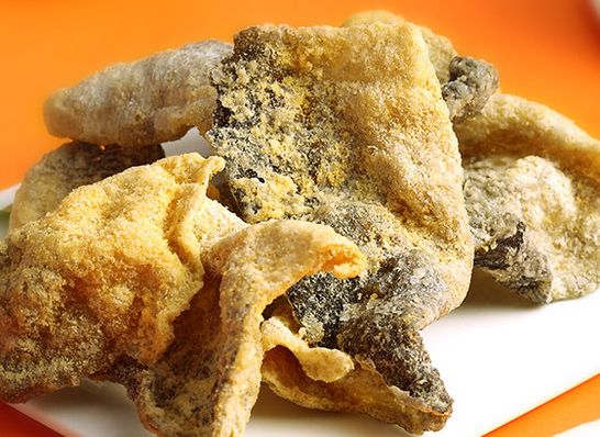 香港人说,咸蛋黄鱼皮不但好吃而且含有丰富的胶原蛋白,是一种边吃边美丽的食材。