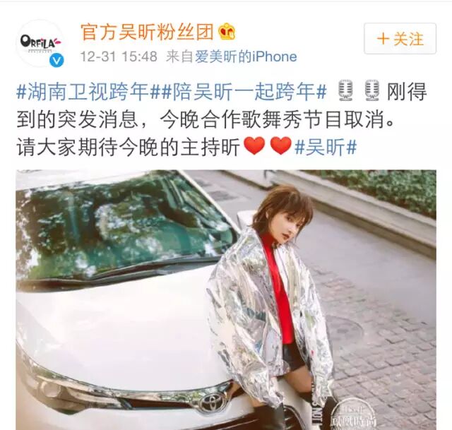 节目被砍引起了广大网友的强烈不满,芒果台跨年演唱会官方微博沦陷,纷纷为吴昕抱不平,还有网友嚷嚷着要退钱。