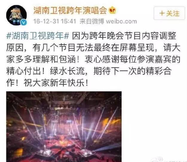 芒果台今年是不是犯水逆啊,一个跨年晚会幺蛾子都辣么多。最开始没有拿到直播牌照,所以他们的跨年晚会都只能采用先网后台的播放形式。