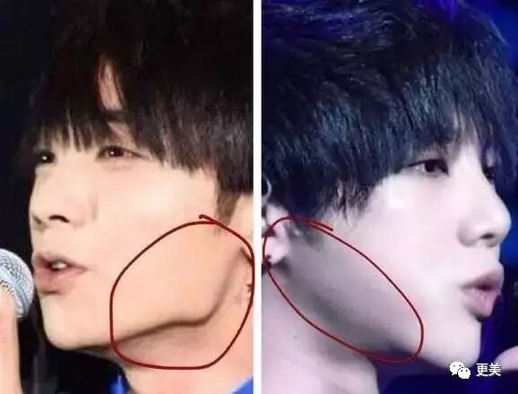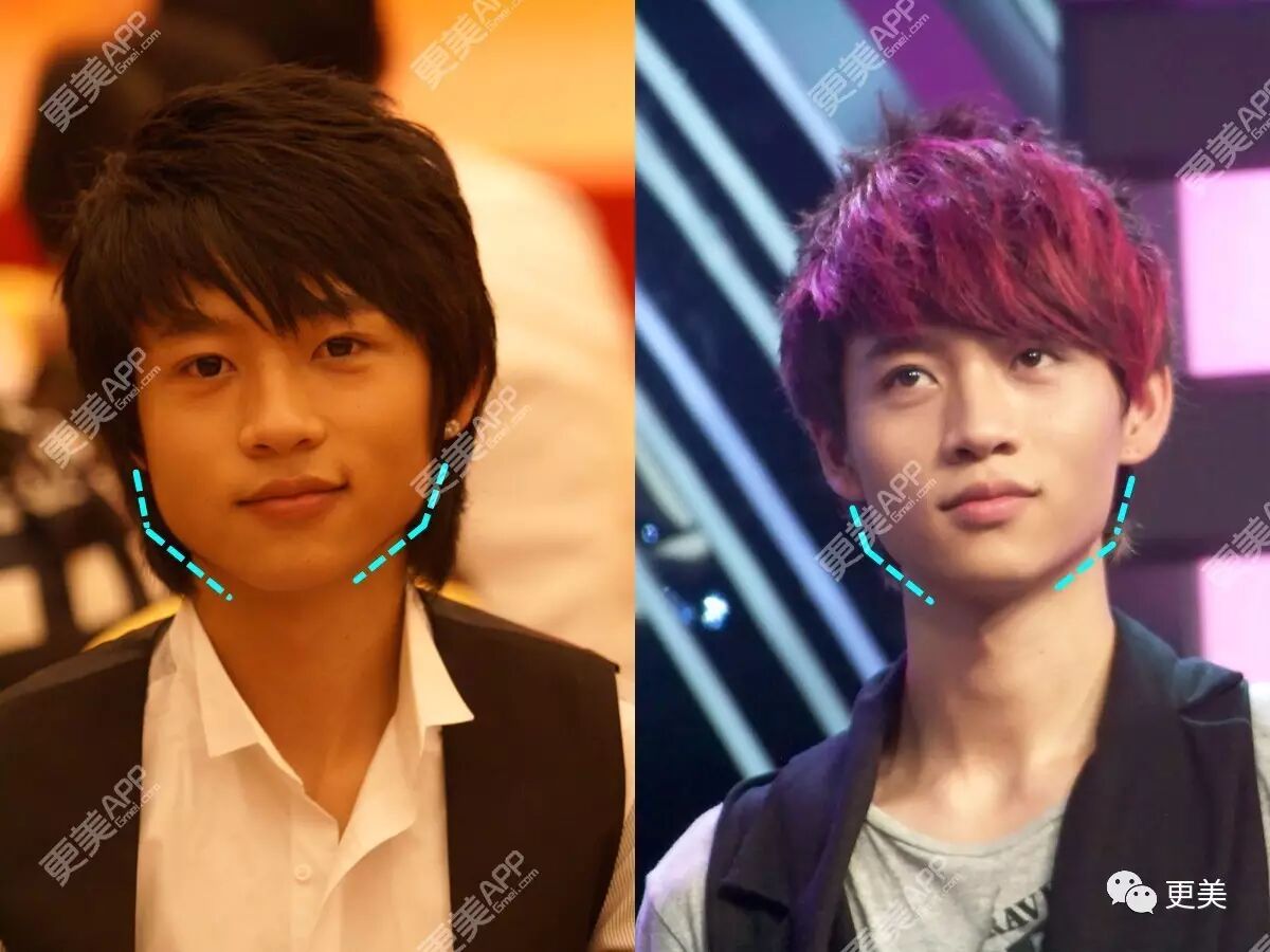 估计韩国训练期间,做了削下颌角手术,真是机智boy,给恢复期留足了时间,回国后脸窄多了,变身V字脸,这真不是暴瘦能做到的!