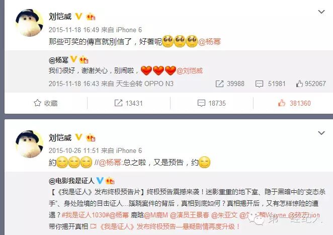 1条是力挺老婆声讨被卷入的“情色视频”,1条是年初刷老婆童星照片秀恩爱~