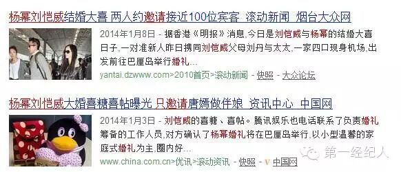 而在刘恺威的主页搜索杨幂,虽然结果多一点,但也只有7条而已……