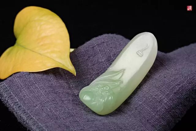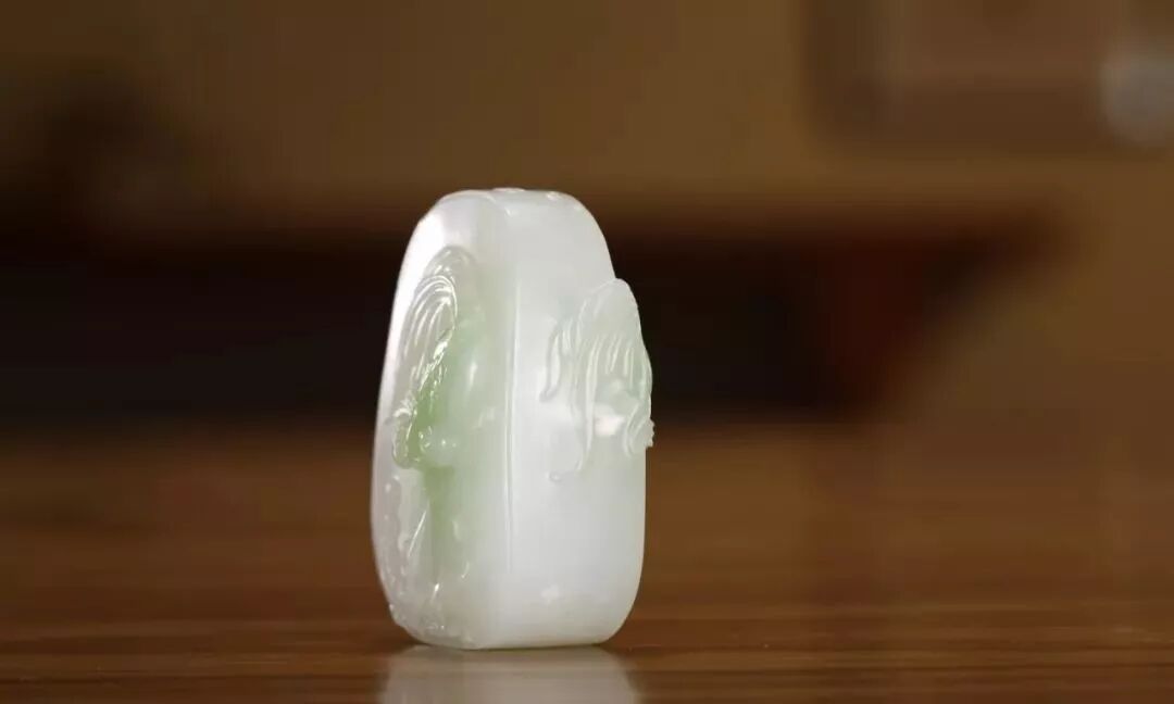 在白底的玉质在清亮的底子上会出现些许淡绿色,飘逸的翠色别有一番韵味,这样的翠青更是非常适合俏雕。