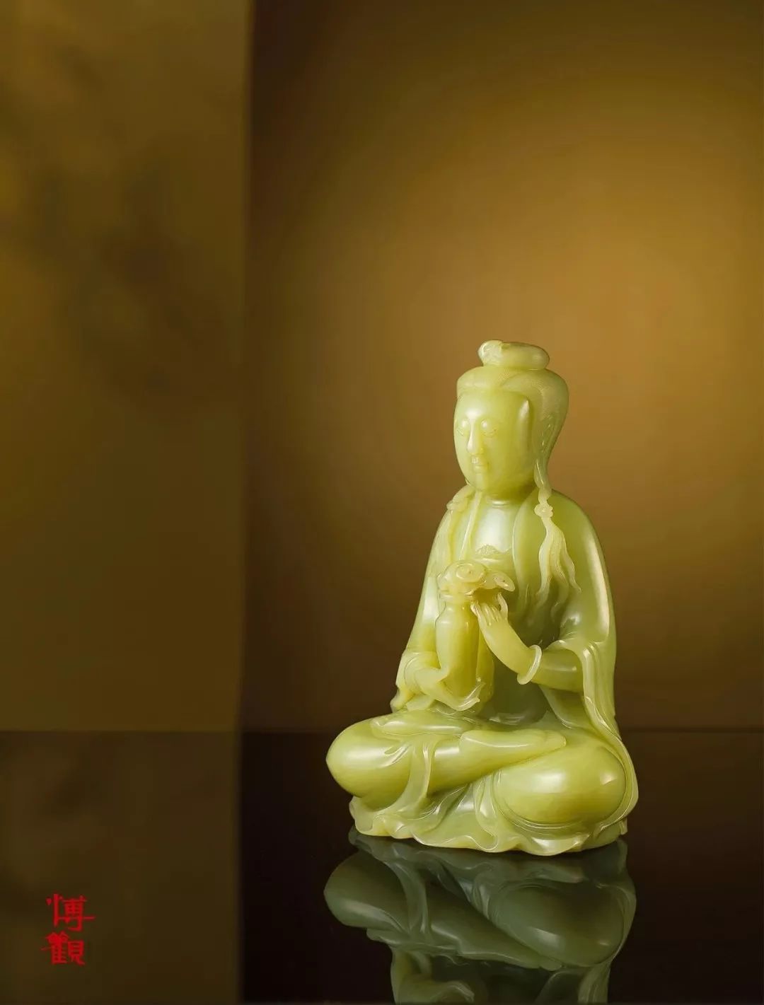 像之前的一次著名玉雕拍卖会上,全场最高价单品的就是下面这尊黄玉观音了。