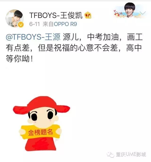 Wuli源源正在中考ING,TFBOYS两小只也送上了暖心祝福呢!