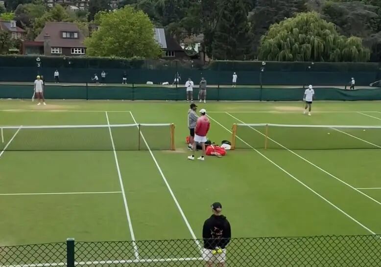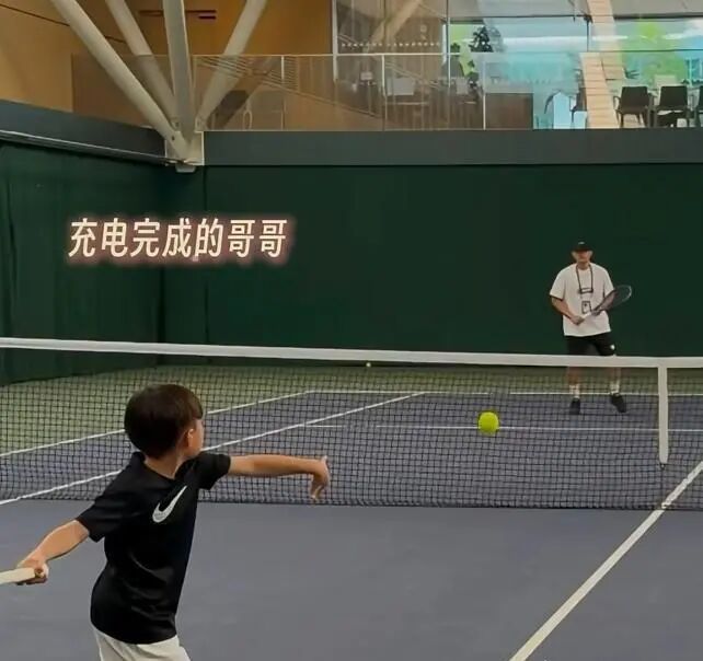 温布尔登的绿茵场变成儿子主场,Romeo挥拍姿势已有专业范儿。
