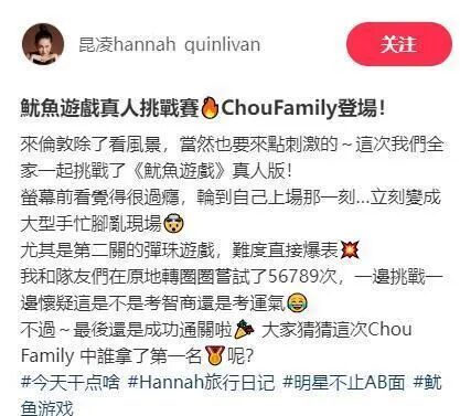 昆凌抓拍下父子满身草屑扭作一团的画面,配文“家里两只皮猴”。
