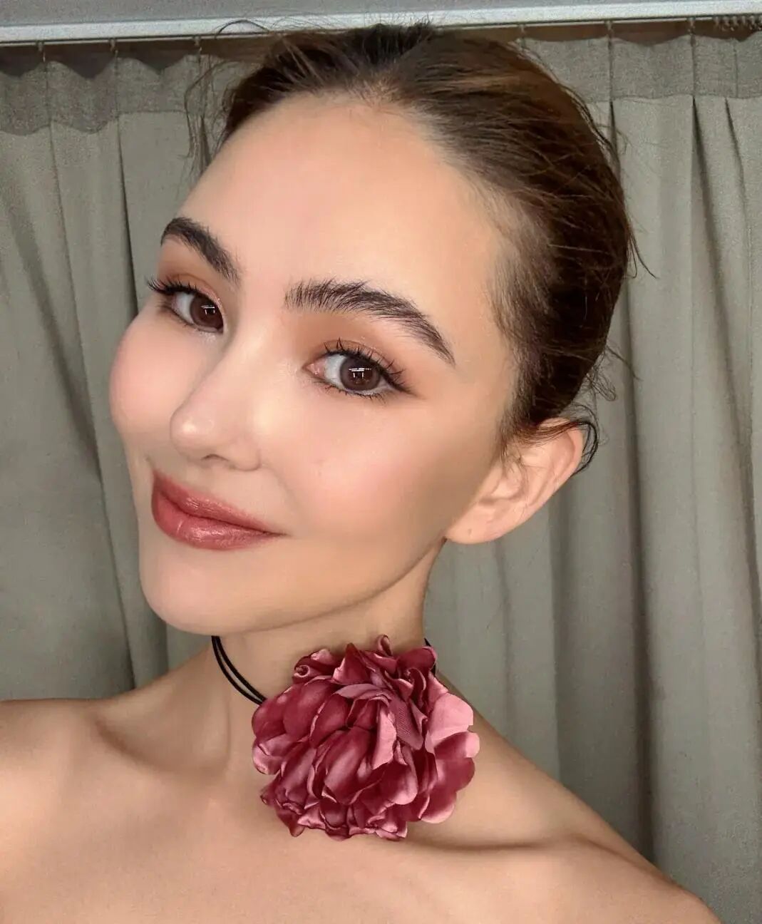 昆凌换上蓝色碎花吊带裙,锁骨在酒杯光影下若隐若现。