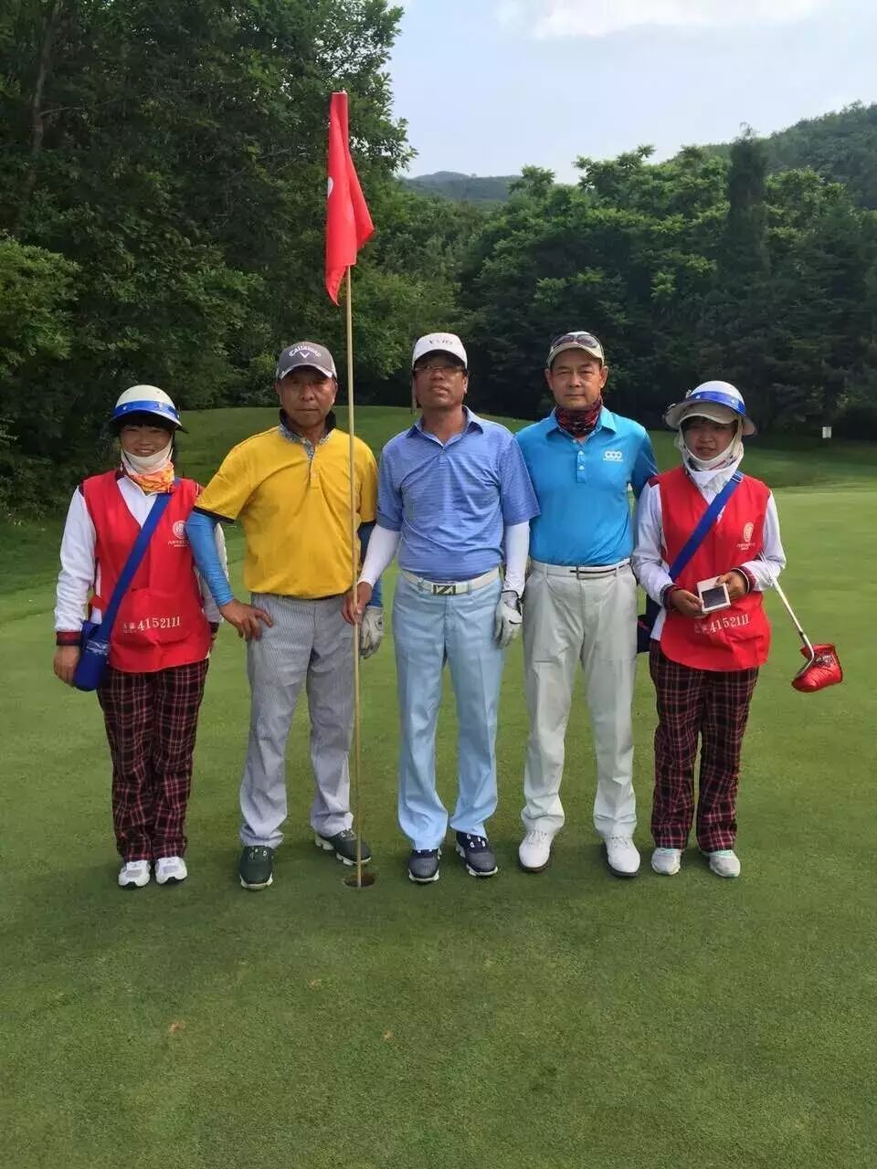 此照片为球场员工与李健先生,田树杰,郭心敏先生的合影,恭祝李健先生创造的“一杆进洞”佳绩。