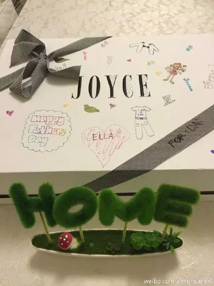 任达华的女儿也是一件小棉袄,给爸爸的礼物盒子是自己手工装饰的。这字写得非常板报体啊。