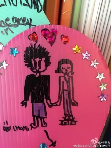 任贤齐的宝贝非常可爱:给老爸画了个爆炸头,还不好意思地注明: