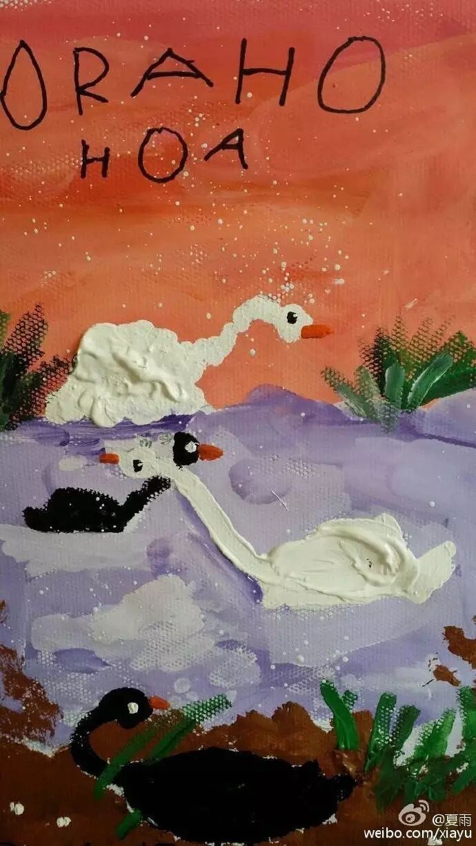 和李嫣李老师的爱好一致,夏哈哈小朋友也是个心中充满色彩的孩子。看这小小年纪的作品,很有灵气。