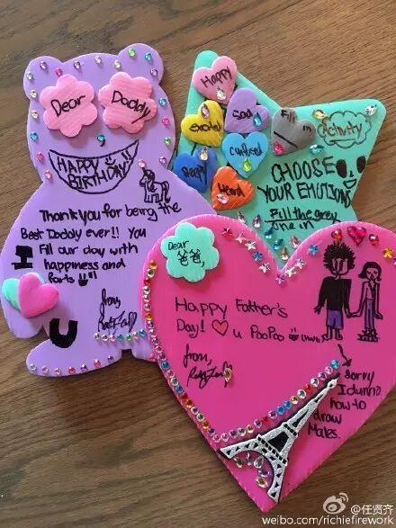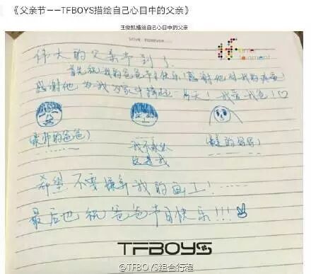 最让人哭笑不得的是三小只@ TFBoys 的父亲节贺卡: