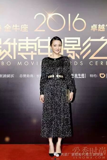 周迅一袭亮面黑色长袖长裙,配上大背头,复古典雅的气质散发出来,格外优雅动人。搭配黑色高跟鞋,拿着金色手包,谁说矮个女生不能穿长裙,周迅穿的很漂亮啊。