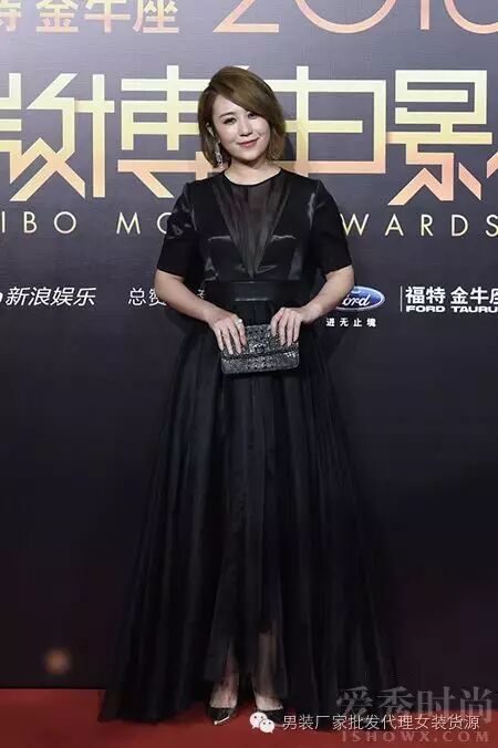马丽一袭黑色透视长裙,不过裙子太长了,即便踩着高跟鞋,也显得身材比例不够协调。而且炎热的夏季一身大黑,看起来好热啊。
