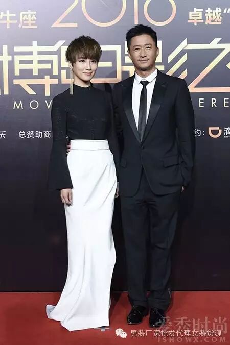 谢楠与吴京夫妻档亮相,黑白配总不会出错的。黑色修身上衣搭配白色高腰半身长裙,简简单单,同样出彩。