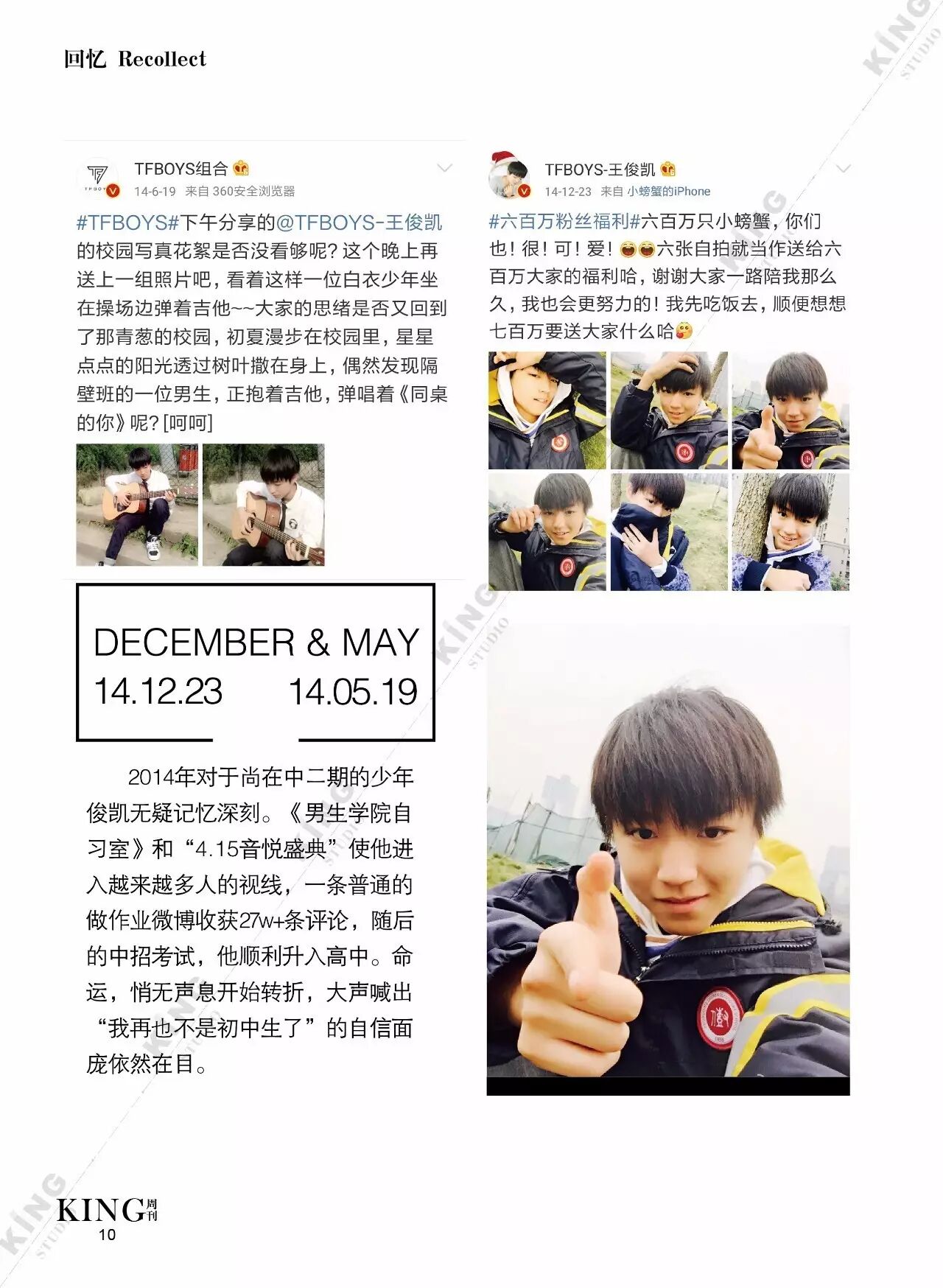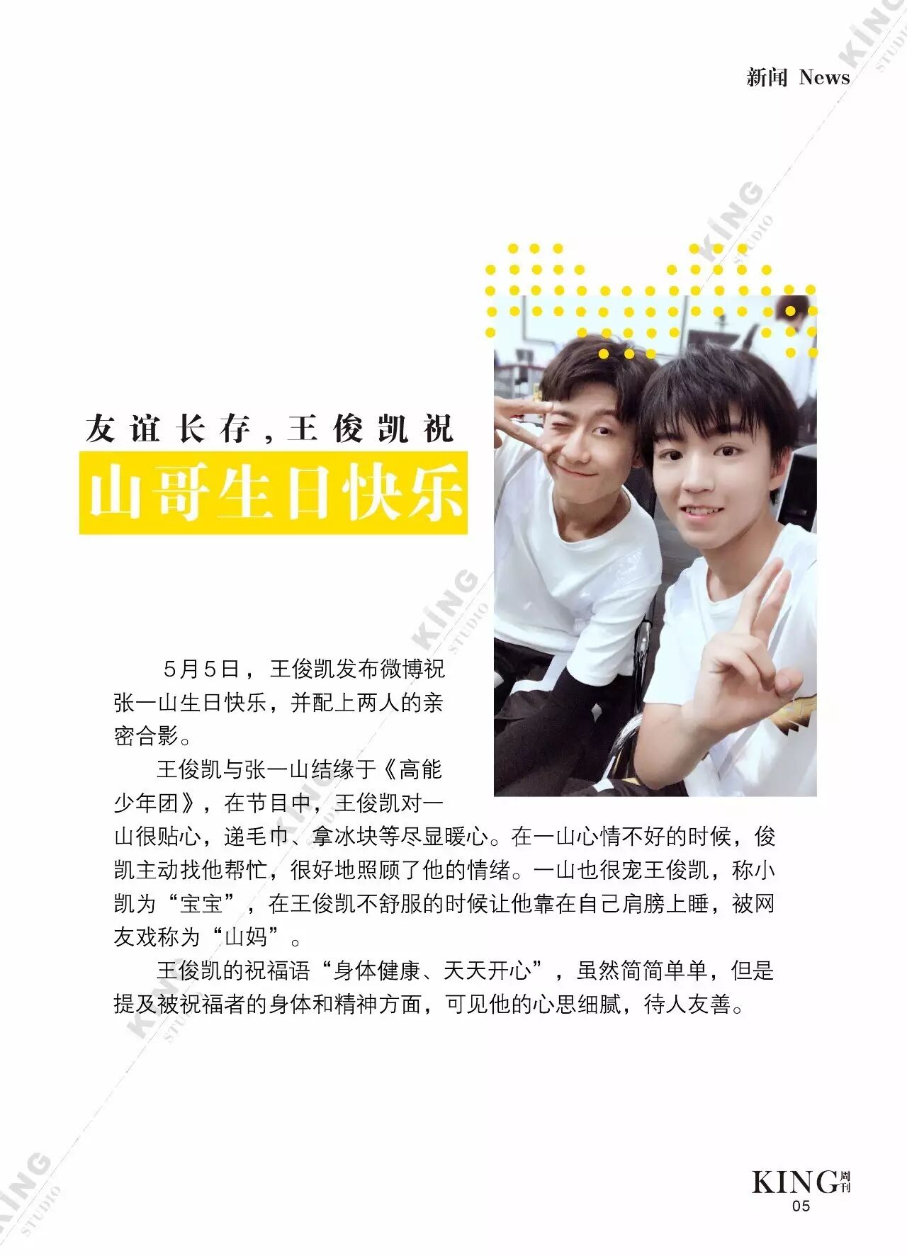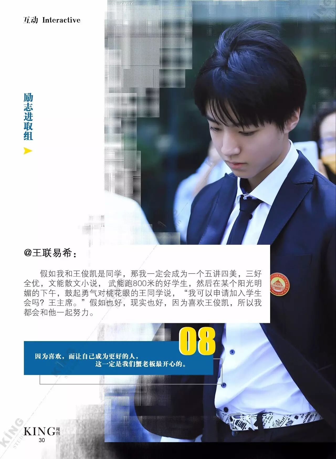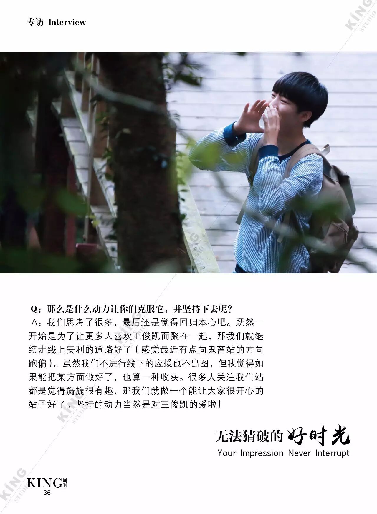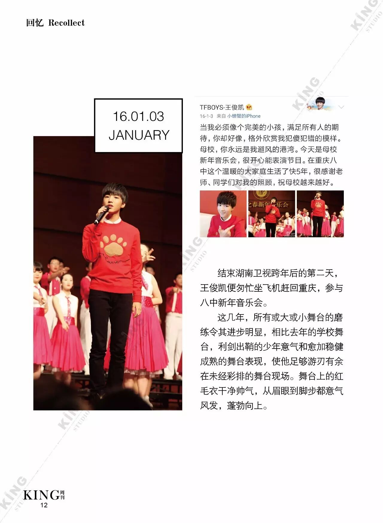 王俊凯KING周刊 |【第一百二十期】美好时光 王俊凯KING周刊 内地男星 2017-05-08 22:20:55 301 创作不易,用心坚持,欢迎请BaGua喝几杯爱心咖啡!打赏并支持本文 打赏并删除本文 美好时光新闻看耿直少年王俊凯细节之处更暖心。互动栏目看看假如小螃蟹们是编导发生了什么?旖旎岁月,承载了更多对少年的陪伴。本期专访走进有爱有趣的YINI旖旎-王俊凯个人站 ,更多精彩更多期待。卷首新闻回忆音乐时尚互动专访编辑||第蓝君 创作不易,用心坚持,欢迎请BaGua喝几杯爱心咖啡!打赏并支持本文 打赏并删除本文 感谢您的支持鼓励,我会继续努力的!文章地址:用户邮箱:打赏金额:USDT 请输入数字点击”去打赏“,即可进行打赏支持本文章哦 王俊凯 About the Author 王俊凯KING周刊 功能介绍:王俊凯粉丝自创周刊,介绍王俊凯和他的故事 Related Posts 王俊凯KING周刊 |【第一百二十期】美好时光 2017-05-08 22:20:55 王俊凯KING周刊 【七十五期】恭喜毕业 2016-06-27 22:19:52 王俊凯KING记晚报|第七十八期 2016-06-27 22:19:51 王俊凯KING周刊 【七十四期】灵魂画手 2016-06-20 22:18:05 王俊凯KING记晚报|第七十三期 2016-06-20 22:18:04 发表评论