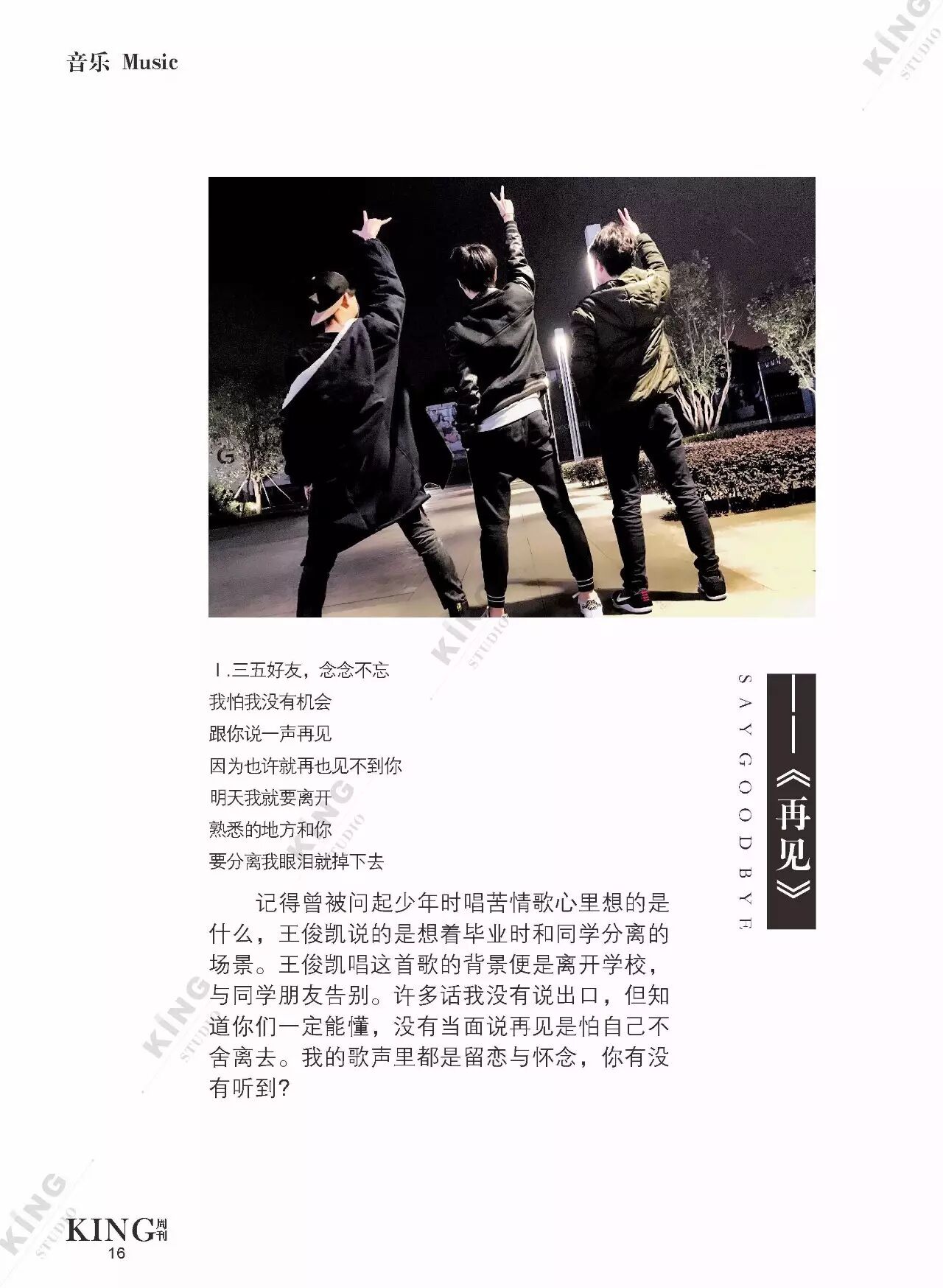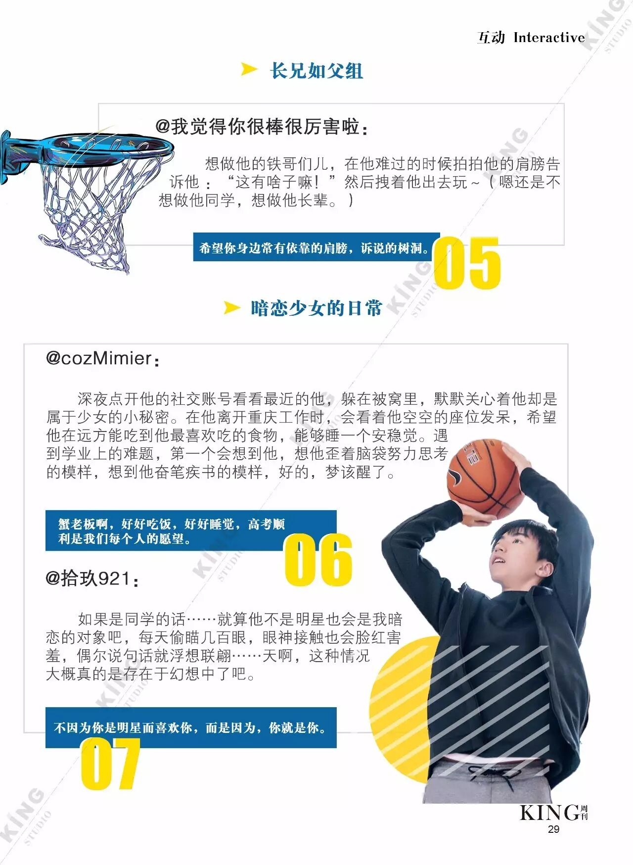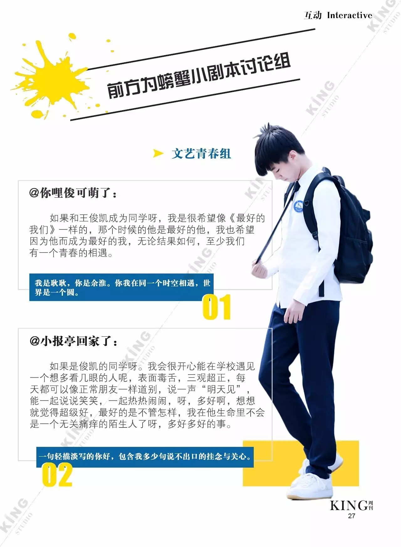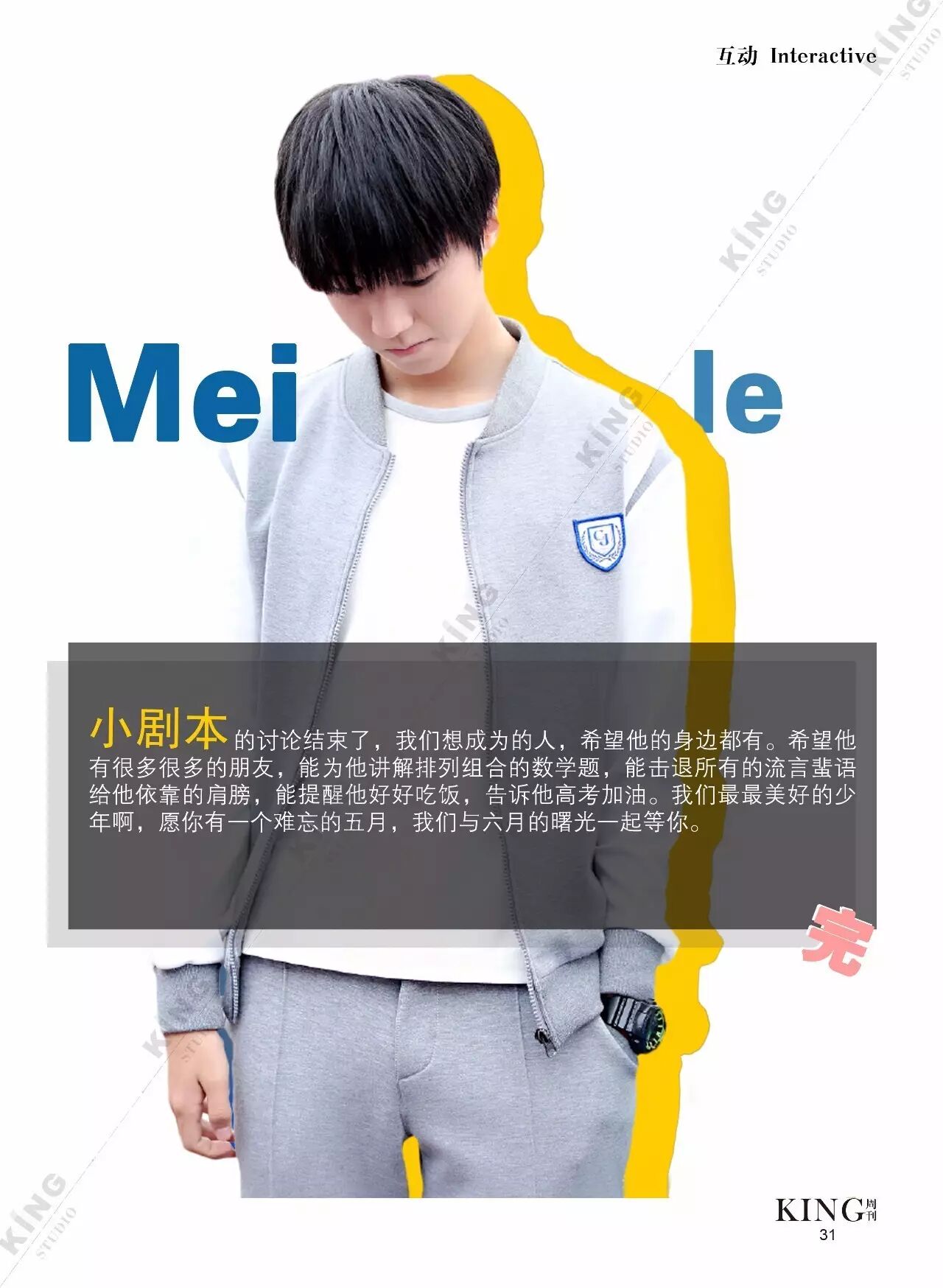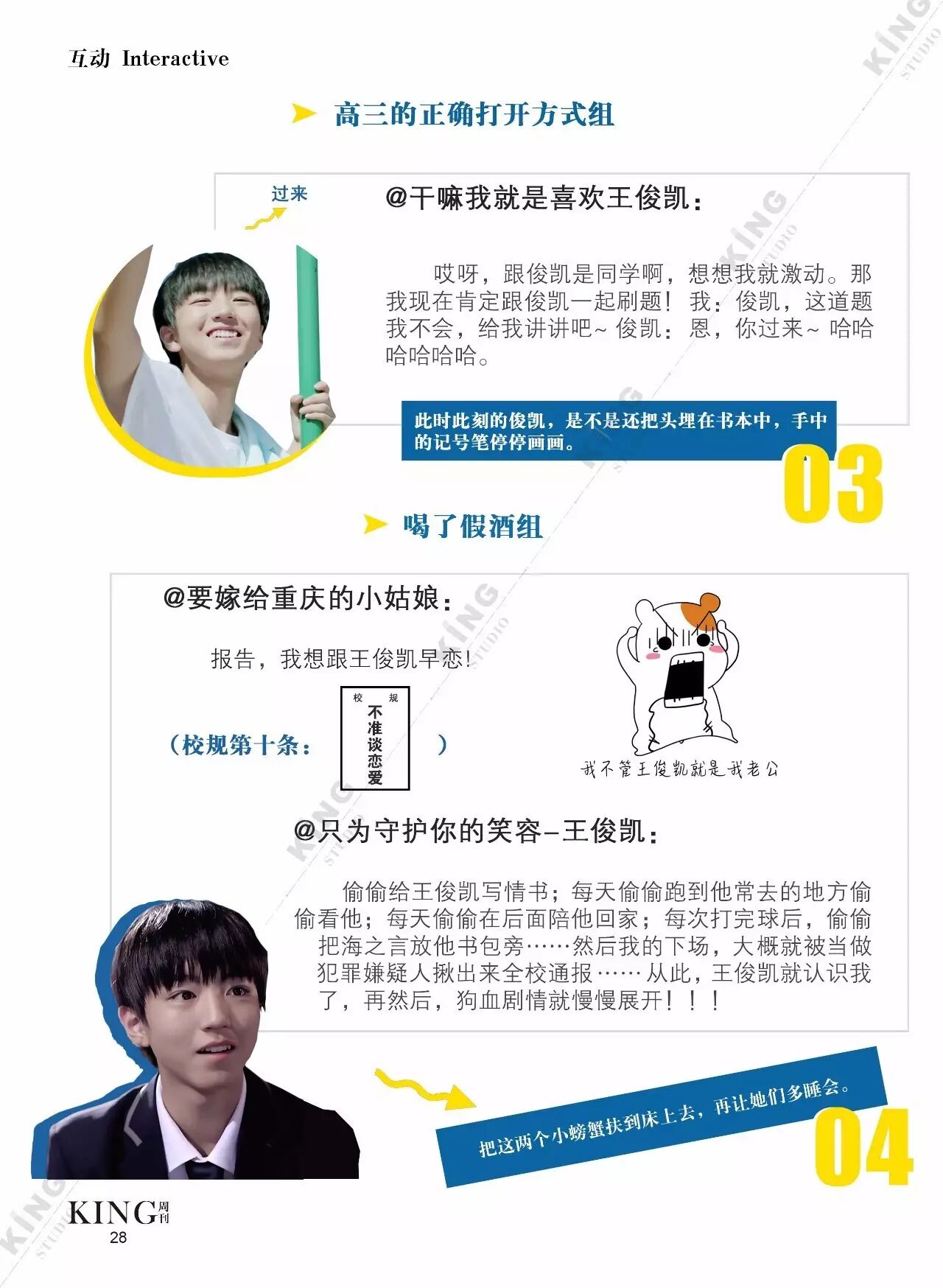 王俊凯KING周刊 |【第一百二十期】美好时光 王俊凯KING周刊 内地男星 2017-05-08 22:20:55 301 创作不易,用心坚持,欢迎请BaGua喝几杯爱心咖啡!打赏并支持本文 打赏并删除本文 美好时光新闻看耿直少年王俊凯细节之处更暖心。互动栏目看看假如小螃蟹们是编导发生了什么?旖旎岁月,承载了更多对少年的陪伴。本期专访走进有爱有趣的YINI旖旎-王俊凯个人站 ,更多精彩更多期待。卷首新闻回忆音乐时尚互动专访编辑||第蓝君 创作不易,用心坚持,欢迎请BaGua喝几杯爱心咖啡!打赏并支持本文 打赏并删除本文 感谢您的支持鼓励,我会继续努力的!文章地址:用户邮箱:打赏金额:USDT 请输入数字点击”去打赏“,即可进行打赏支持本文章哦 王俊凯 About the Author 王俊凯KING周刊 功能介绍:王俊凯粉丝自创周刊,介绍王俊凯和他的故事 Related Posts 王俊凯KING周刊 |【第一百二十期】美好时光 2017-05-08 22:20:55 王俊凯KING周刊 【七十五期】恭喜毕业 2016-06-27 22:19:52 王俊凯KING记晚报|第七十八期 2016-06-27 22:19:51 王俊凯KING周刊 【七十四期】灵魂画手 2016-06-20 22:18:05 王俊凯KING记晚报|第七十三期 2016-06-20 22:18:04 发表评论